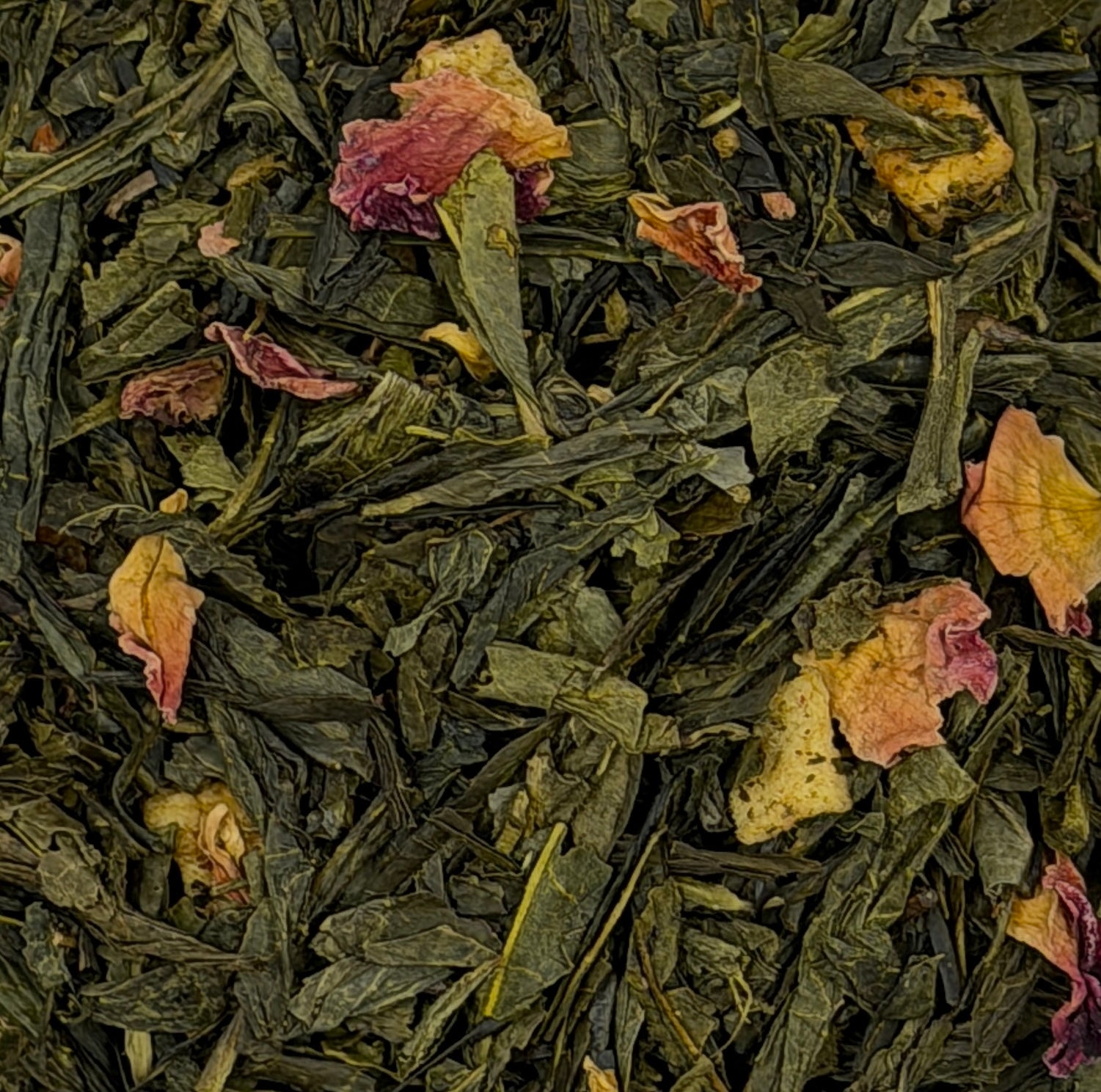 A lovely floral green tea with a touch of lychee fruit and rose. Enjoy a cup in the afternoon and dream of spring! Lovely as a hot or cold tea.